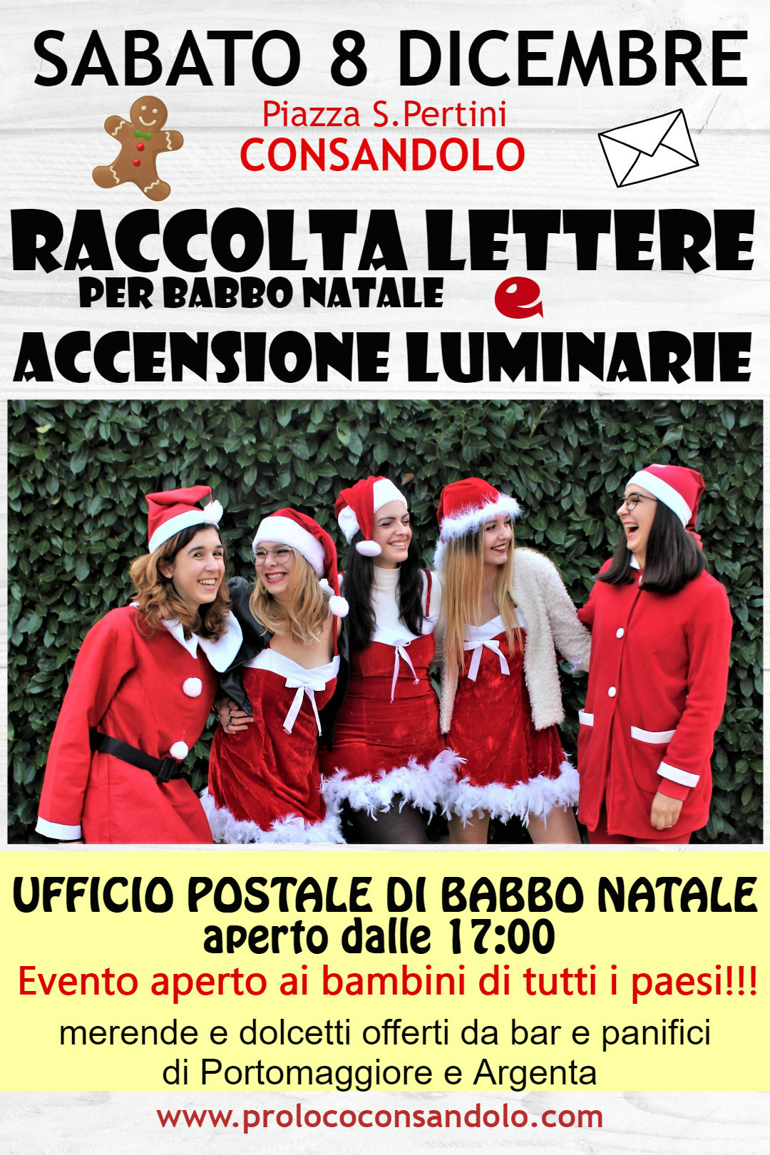 Sabato 8 Dicembre 2018, in Piazza S. Pertini a Consandolo, la Banda di Babbo Natale aspetta tutti i bambini per la raccolta delle lettere e l’accensione delle luminarie nel paese.