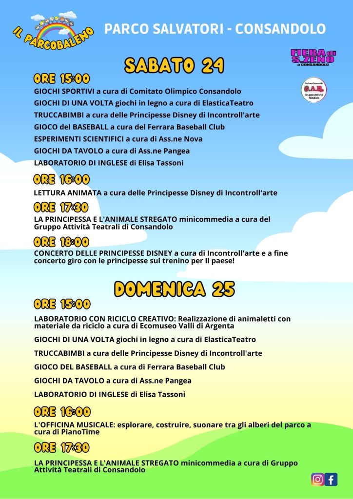 12 settembre 202212 settembre 2022prolococonsandoloLascia un commento in IL “PARCOBALENO” alla Fiera di Consandolo: programma completo IL “PARCOBALENO” alla Fiera di Consandolo: programma completo Condividi: Condividi su X (Si apre in una nuova finestra) X Condividi su Facebook (Si apre in una nuova finestra) Facebook Mi piace Caricamento... Correlati