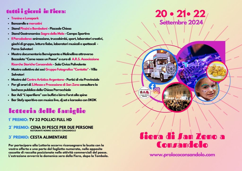 29 agosto 20248 settembre 2024prolococonsandoloLascia un commento in Fiera di San Zeno 2024 Fiera di San Zeno 2024 Condividi: Condividi su X (Si apre in una nuova finestra) X Condividi su Facebook (Si apre in una nuova finestra) Facebook Mi piace Caricamento... Correlati