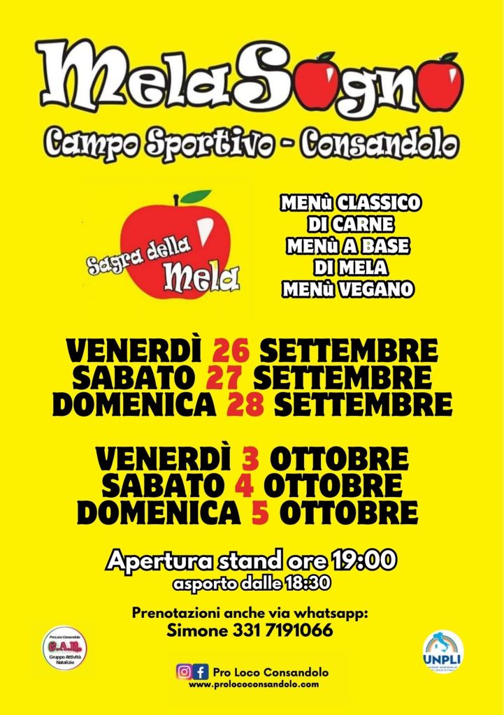 24 agosto 202524 agosto 2025prolococonsandoloLascia un commento in MelaSogno 2025 – Sagra della Mela MelaSogno 2025 – Sagra della Mela Condividi: Condividi su X (Si apre in una nuova finestra) X Condividi su Facebook (Si apre in una nuova finestra) Facebook Mi piace Caricamento... Correlati